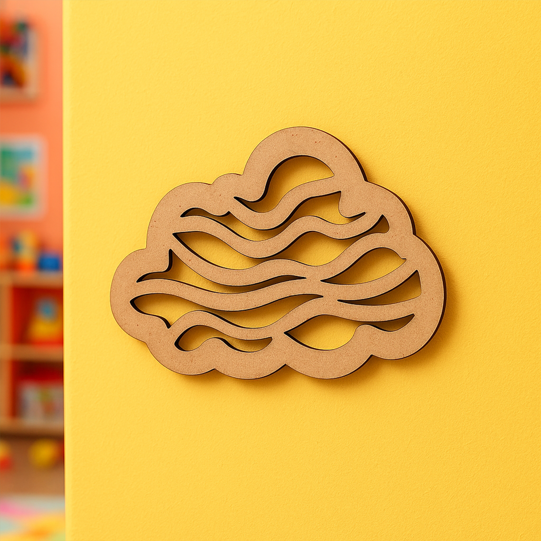 This DIY MDF cloud cutout is a beautifully designed craft base featuring smooth wave-style cut patterns. Made from premium-quality MDF, it offers a clean and sturdy surface ideal for acrylic painting, mandala art, decoupage, lippan work, resin art, and mixed-media creations