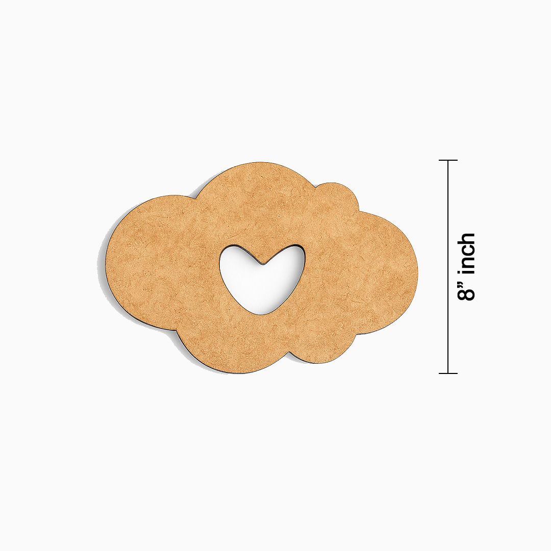 This DIY MDF cloud with heart cutout is a sweet and creative craft base perfect for personalised art and décor projects. Made from premium-quality MDF, it has a smooth surface ideal for acrylic painting, mandala art, decoupage, lippan work, resin art, and mixed-media designs