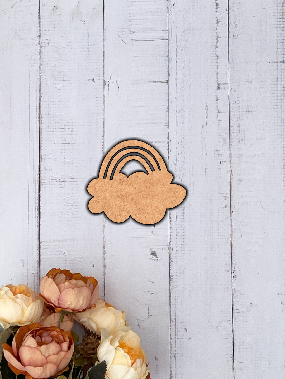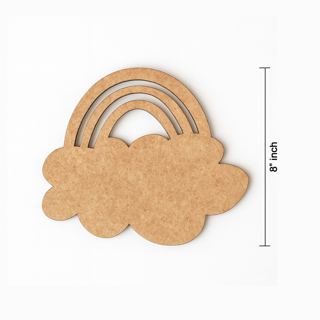This DIY MDF cloud with rainbow cutout is a delightful craft base designed for cheerful and creative décor projects. Made from premium-quality MDF, it features a smooth surface with layered rainbow arches, making it ideal for acrylic painting, mandala art, decoupage, lippan work, resin art, and mixed-media creations