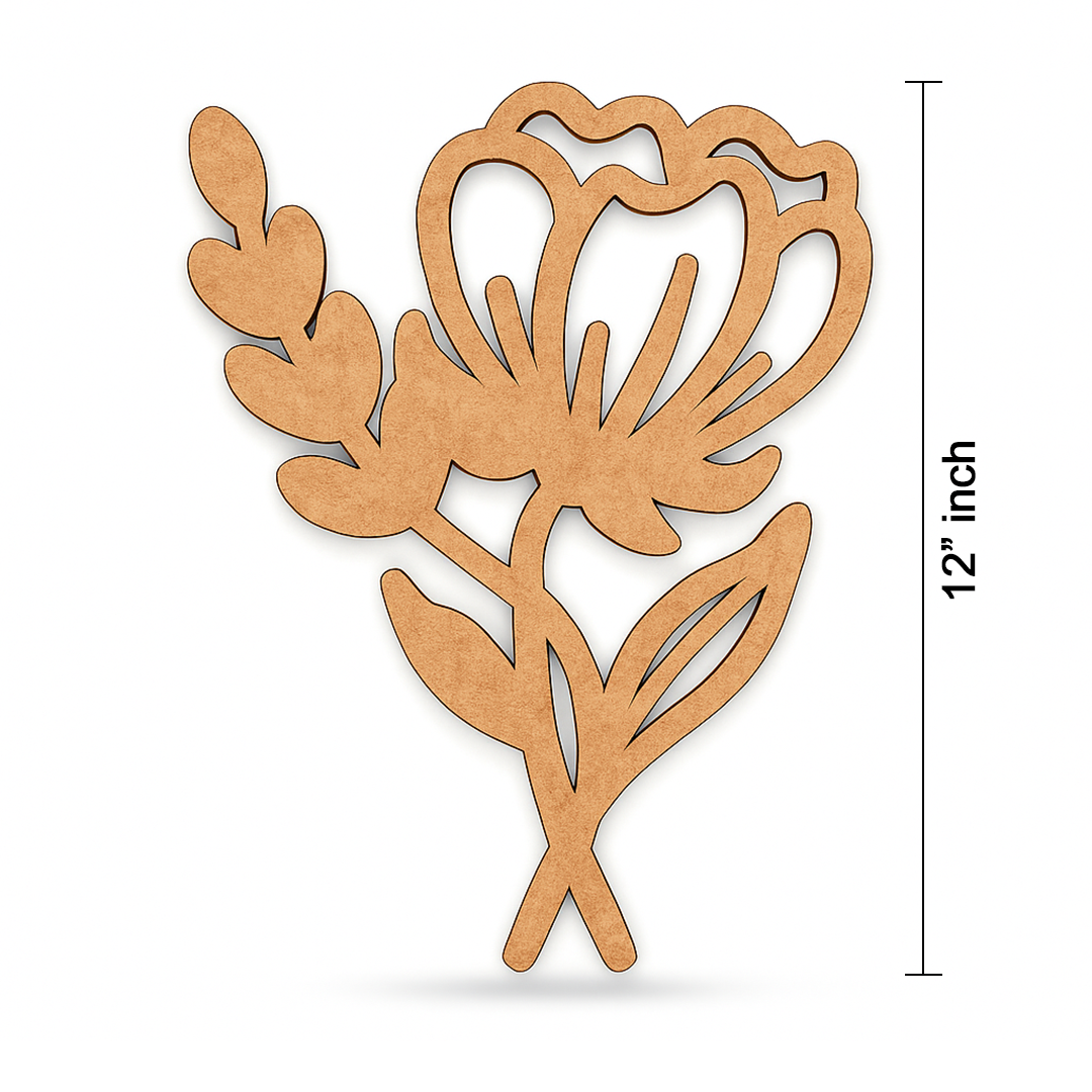 Create graceful handmade décor with this DIY MDF floral stem cutout, crafted from premium medium-density fibreboard. Featuring a detailed flower with leaves and stem, this cutout is perfect for acrylic painting, mandala art, stencil work, resin art, wall décor, and handmade craft projects