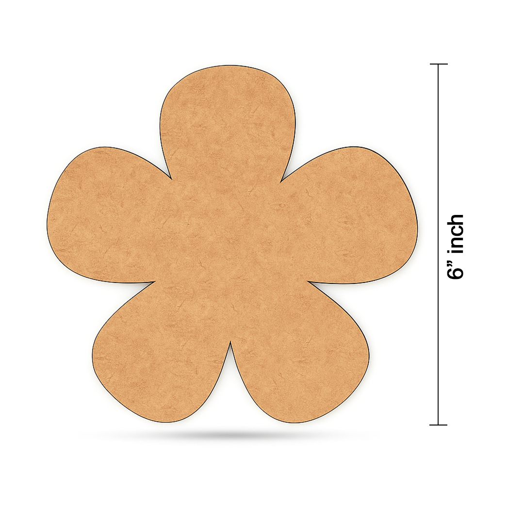 Create beautiful handmade décor with this DIY MDF flower shape cutout, crafted from premium medium-density fibreboard. The simple five-petal floral design makes it perfect for acrylic painting, mandala art, resin work, wall décor, rangoli bases, kids crafts, and festive decorations. Its smooth surface ensures effortless painting and long-lasting finishes
