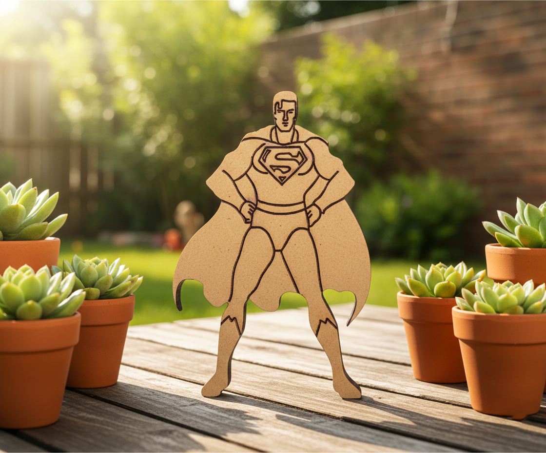 Unleash creativity with this DIY MDF flying superhero figure cutout, crafted from premium laser-cut MDF. Designed in a confident power pose with flowing cape, this paint-ready craft blank is ideal for kids’ DIY activities, superhero theme décor, resin art, school projects, and handmade gifts—perfect for personal use and resale