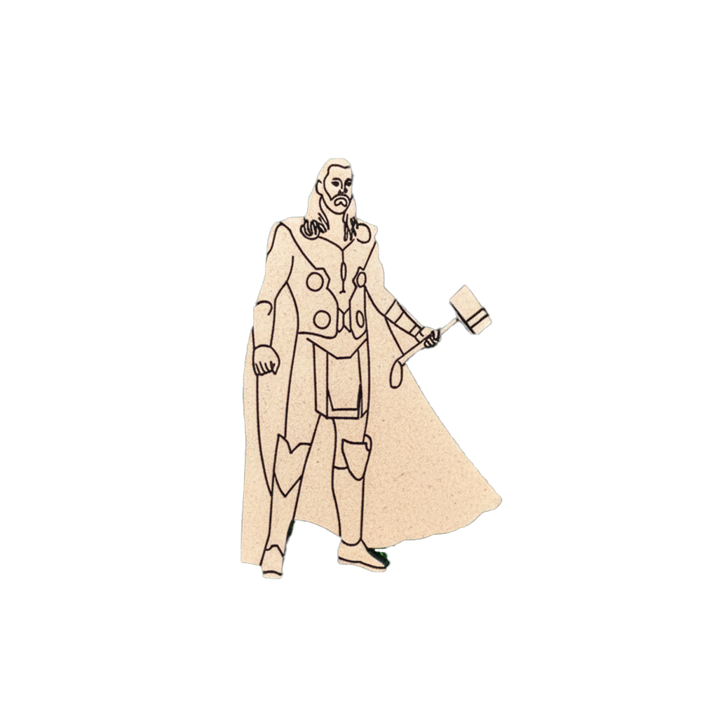 Create bold, powerful décor with this DIY MDF hammer warrior cutout, featuring a strong cape-wearing hero holding a hammer. Precision laser-cut from premium MDF, this craft base is ideal for acrylic painting, resin art, comic-style artwork, stencil projects, kids’ room décor, and themed wall art. Perfect for superhero-inspired DIY creations