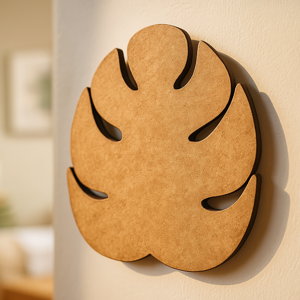 Create stylish handmade décor with this DIY MDF tropical leaf cutout, crafted from premium medium-density fibreboard. The smooth, laser-cut surface makes it ideal for acrylic painting, mandala art, stencil work, resin pouring, kids craft projects, and modern wall décor said. Its bold leaf shape is perfect for nature-inspired interiors and creative DIY projects