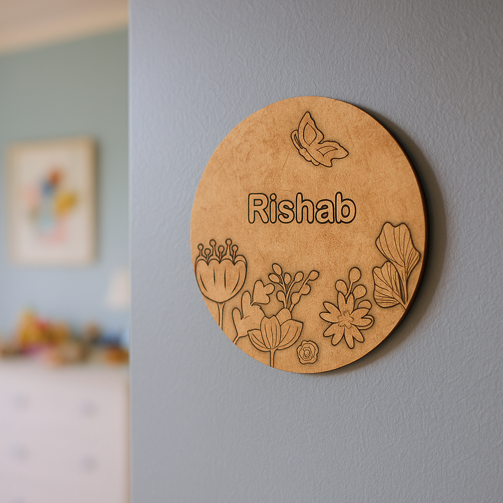 Add a fresh and colorful touch to your child’s room with this DIY Floral Garden Name Plate Crafted from premium MDF, the engraved design features blooming flowers, leaves, and a butterfly – making it perfect for painting, coloring, and decorating.