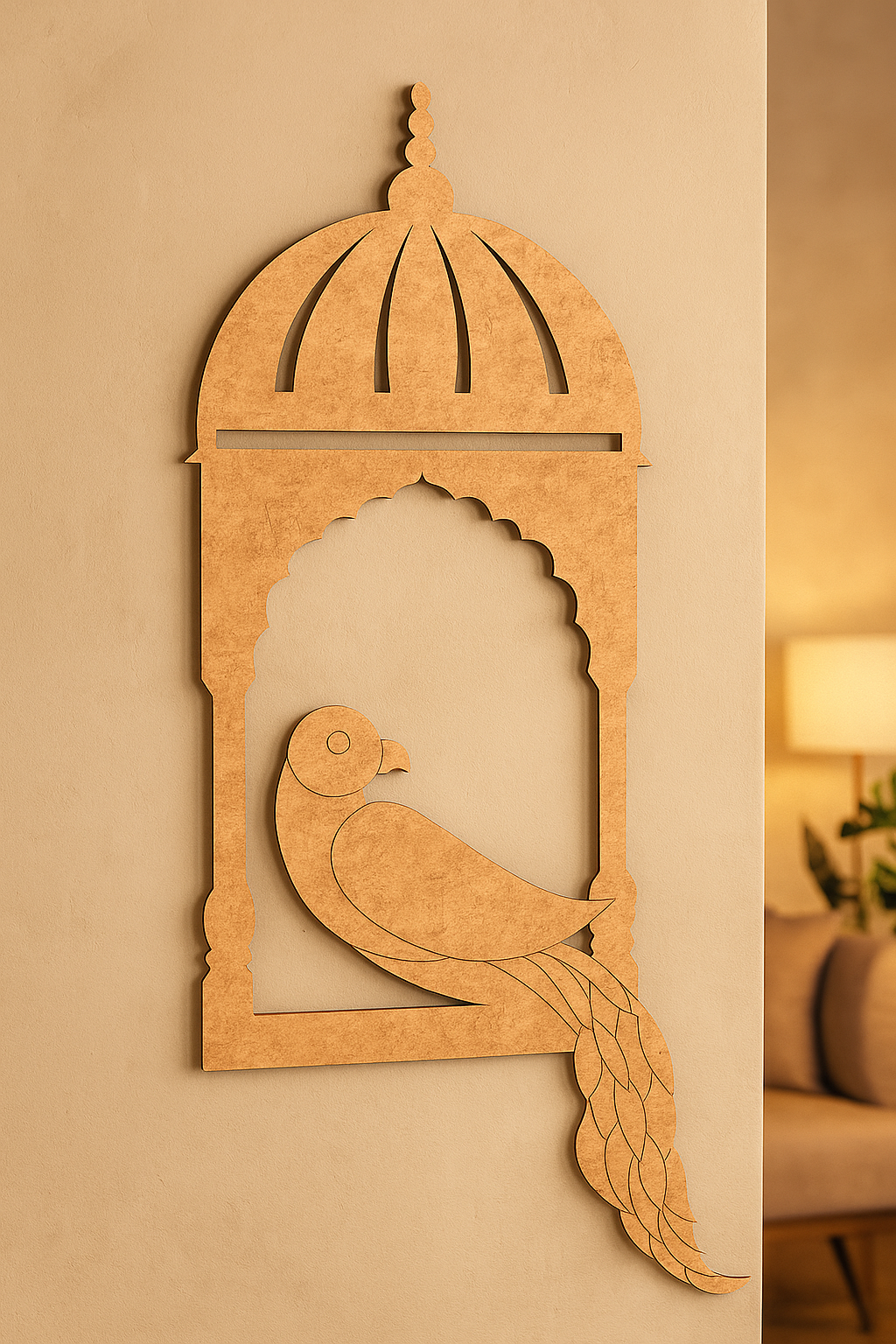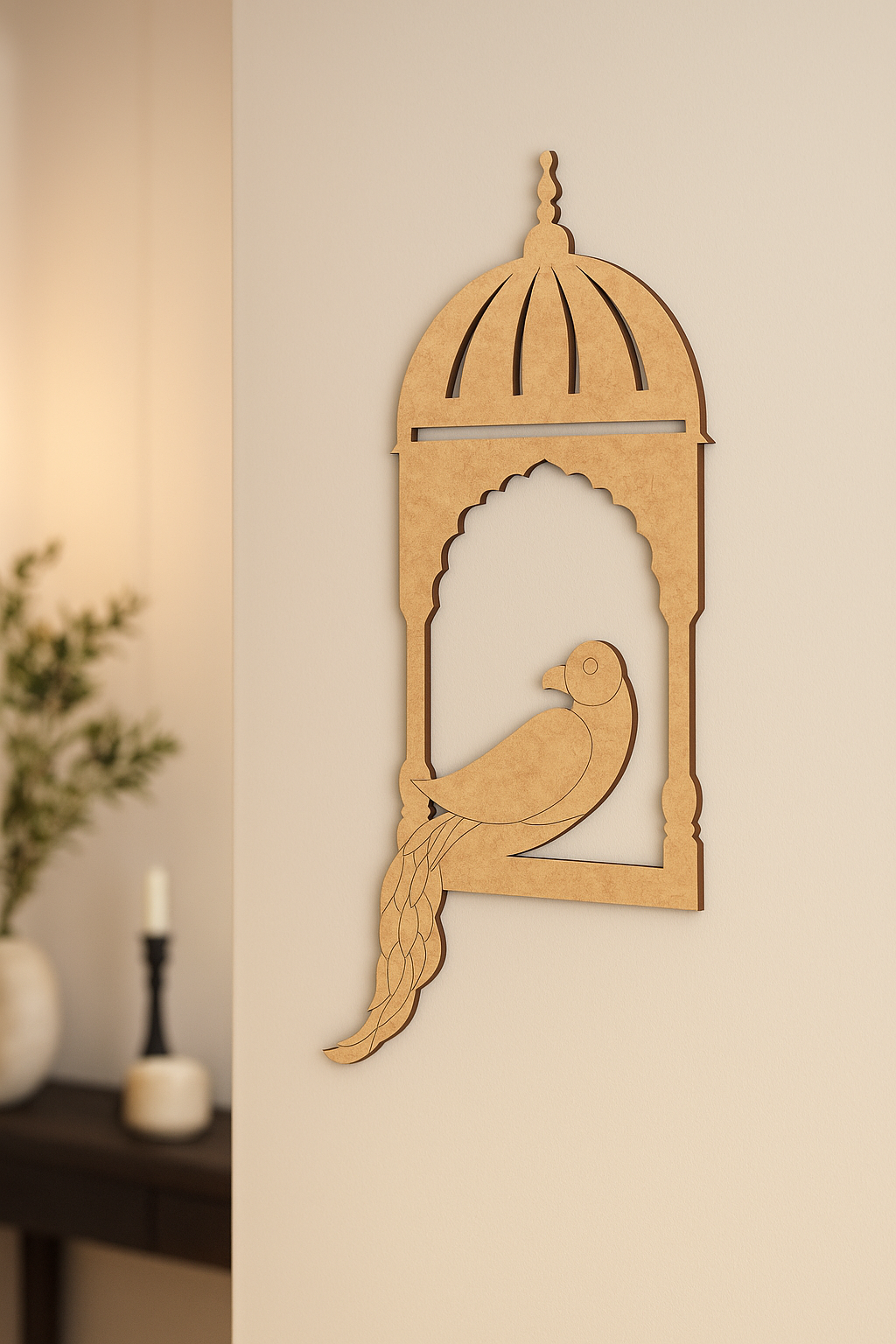 A traditional DIY MDF Wall Hanging with a Bird Motif, perfect for painting, mandala, and creative Home Décor projects.