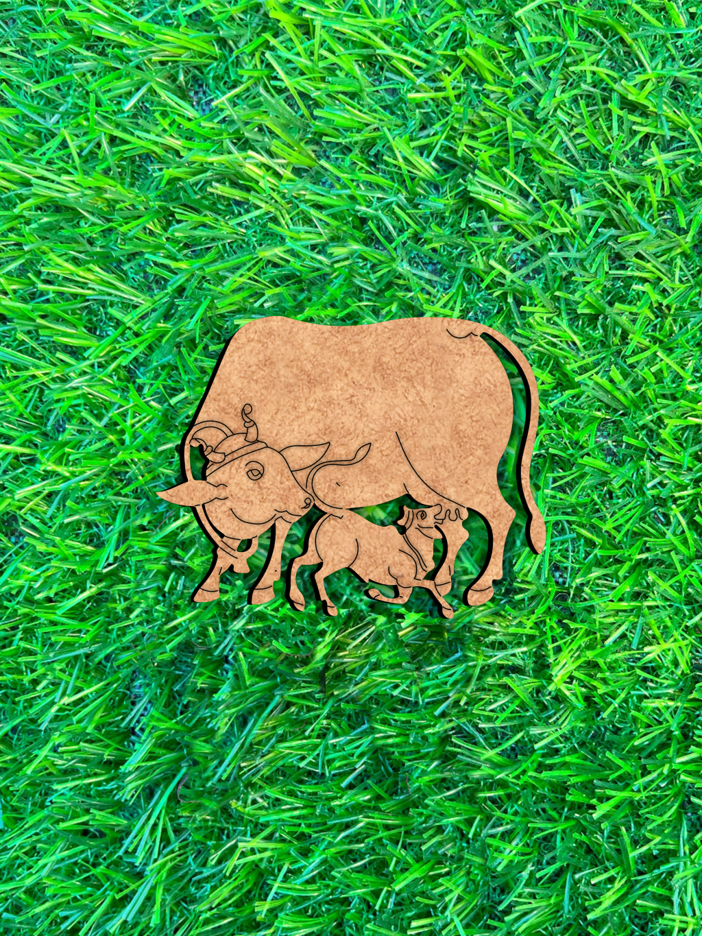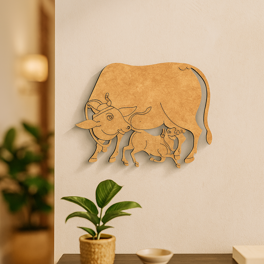 A traditional DIY MDF Cow and Calf Wall Art Base, ideal for painting, mandala, and creative Home Décor projects.