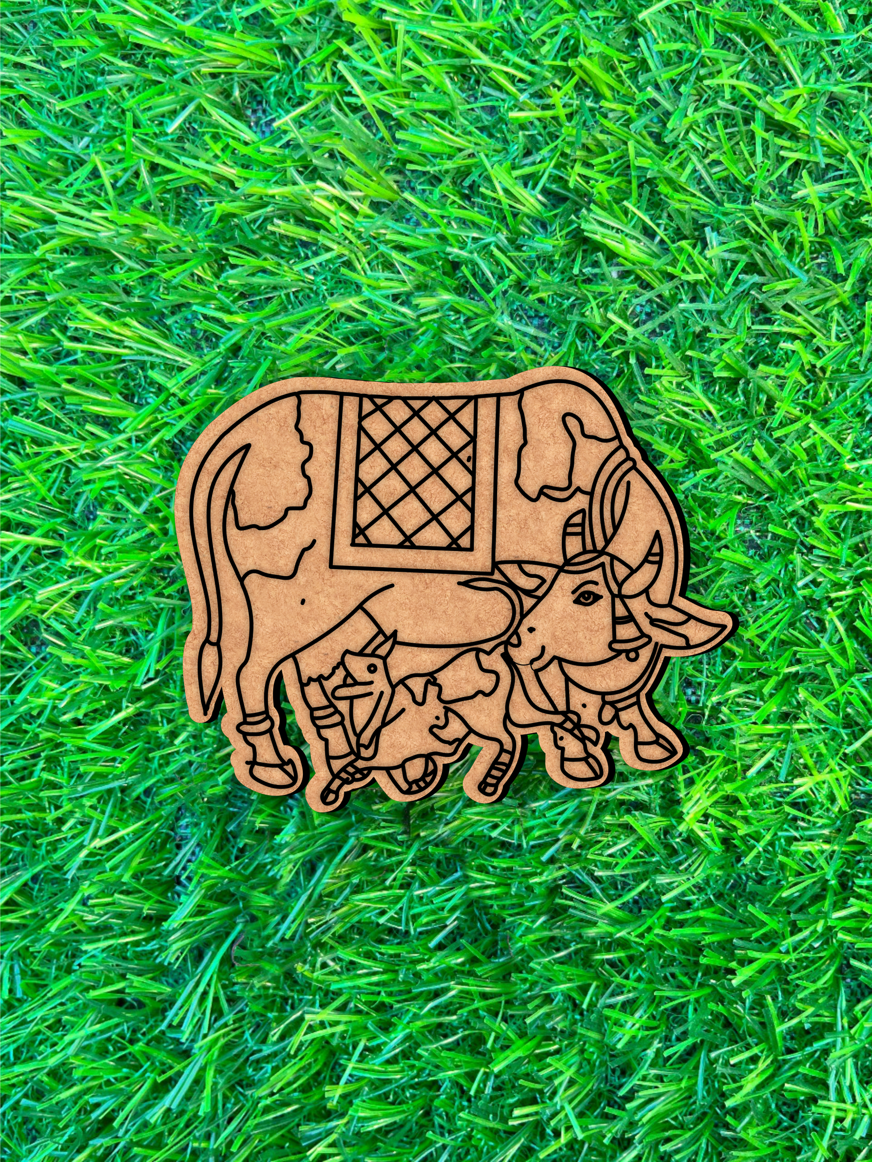 A traditional DIY MDF Kamdhenu Cow and Calf Wall Art base, ideal for painting, mandala, and meaningful Home Décor projects.