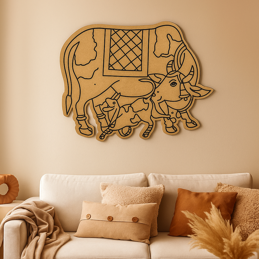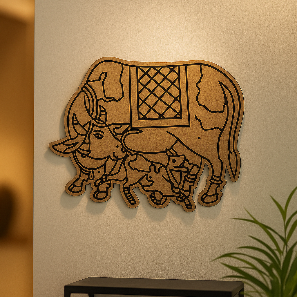 DIY MDF Kamdhenu Cow & Calf Wall Art for Home Decor