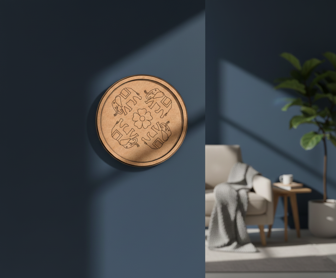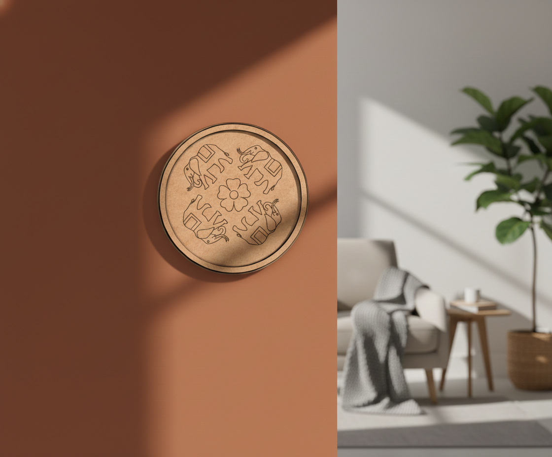 Celebrate creativity and traditional art with this beautifully detailed MDF Elephant Circle Bordered Pre Marked DIY Craft Base, crafted from premium quality MDF with smooth finish and clean engraved outlines that make painting easy for beginners and professionals. This unpainted DIY MDF base is perfect for mandala art, dot painting, acrylic painting, fabric painting, resin art, decoupage, sketching, school projects, workshops, and hobby crafting. The elegant elephant circle motif adds a cultural and artistic charm, making it ideal for wall décor, festive decoration, handmade gifts, personalized décor projects, and creative displays. The strong MDF surface ensures durability and excellent color absorption for neat and long-lasting results. MDF Elephant Circle Bordered Pre Marked DIY Craft Base is suitable for kids, hobby artists, and professionals alike, and like all our products, it is completely made of MDF.