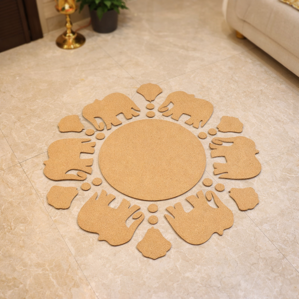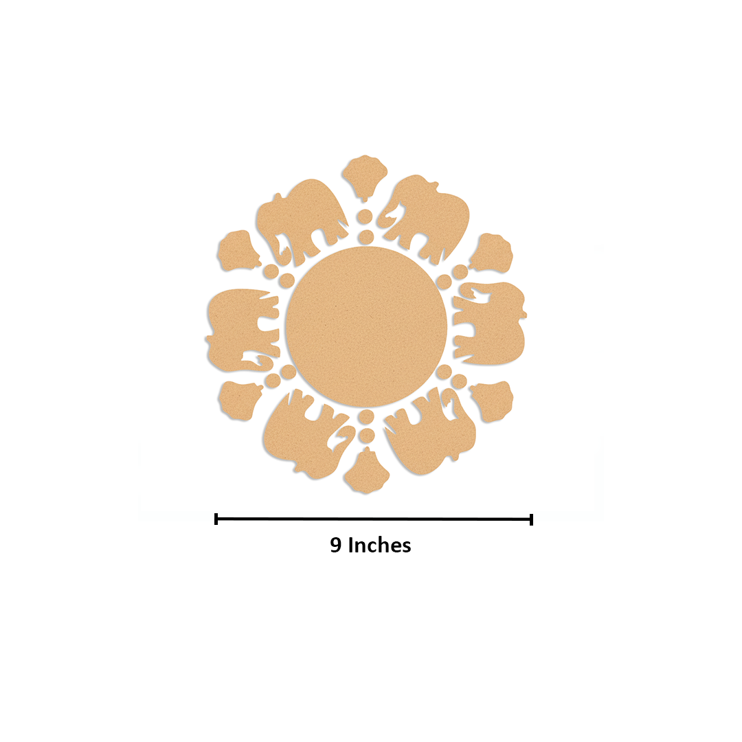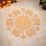 Add a traditional royal vibe to your celebrations with DIY MDF Elephant Rangoli Cutouts for Festive Decor. This unique rangoli cutouts design features a large center circle with elephant motifs arranged around it, creating a bold statement piece for your floor décor. Made from smooth, high-quality MDF with clean-cut edges, it is perfect for acrylic painting and embellishing with kundan, mirror work, pearls, glitter, or decoupage. Ideal for Diwali décor, Lakshmi pooja setup, mandir decoration, wedding entrances, mehendi décor, and housewarming events. Easy to arrange, easy to store, and reusable every season—DIY MDF Elephant Rangoli Cutouts for Festive Decor is a perfect pick for craft lovers and festive decorators