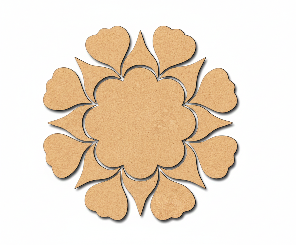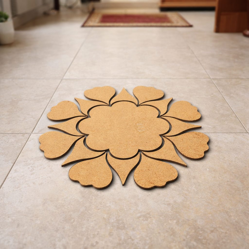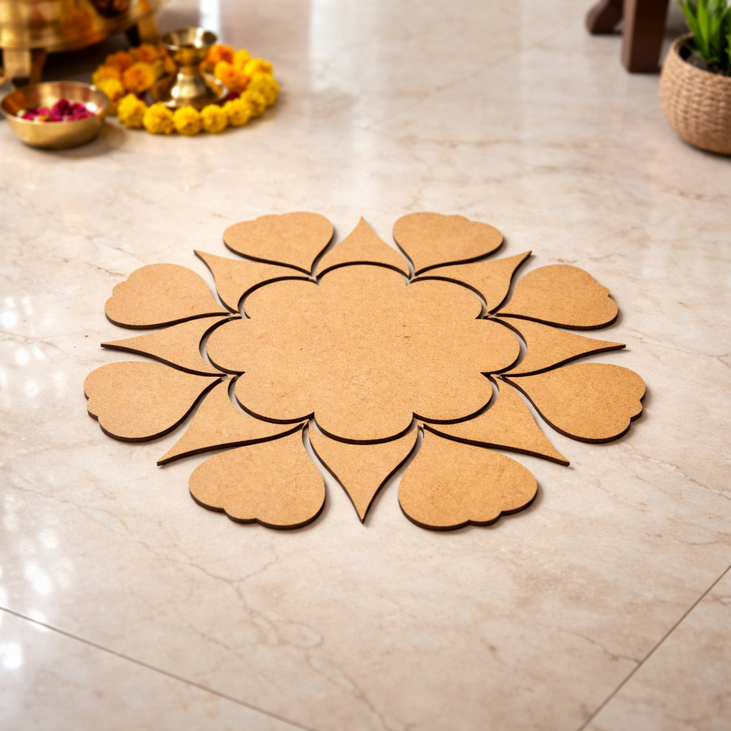 Make festive décor easy and elegant with DIY MDF Floral Rangoli Cutouts for Diwali & Pooja. This rangoli cutouts design features a large central flower base with matching petal elements that create a full, layered rangoli pattern in minutes—perfect for clean, mess-free floor decoration. Crafted from premium MDF with smooth finishing and clean-cut edges, these pieces are ideal for acrylic painting and embellishing with kundan, mirror work, pearls, glitter, or decoupage. Use it for Diwali decoration, Lakshmi pooja setup, mandir décor, wedding entrances, housewarming décor, and festive gifting. Easy to arrange, easy to store, and reusable every season—DIY MDF Floral Rangoli Cutouts for Diwali & Pooja is a must-have for DIY lovers