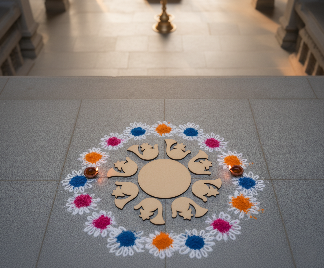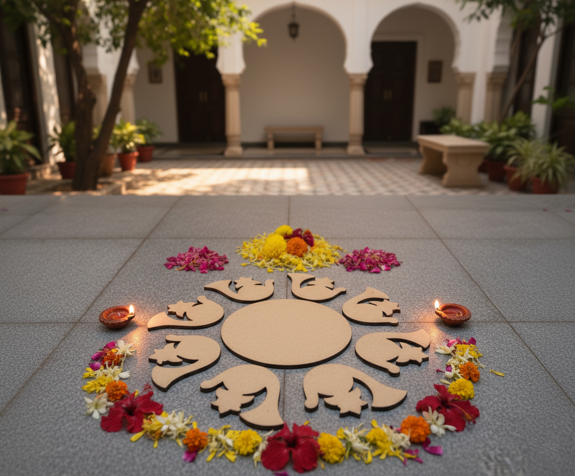 This DIY MDF Paisley Rangoli Base features a round center surrounded by paisley floral shapes, making it ideal for rangoli art and festive décor. The smooth MDF surface supports acrylic painting, dot mandala, decoupage, resin work and mixed-media craft. Perfect for Diwali decoration, Navratri pooja décor, home entrance decoration and kids’ craft activities. Decorate with stones, glitter, mirrors, colors or lippan art to create stunning designs for festivals and home décor.It is suitable for hobby crafters, students, art lovers and gift makers. It can also be used as a centerpiece board, wall décor base, pooja thali base or table décor project
