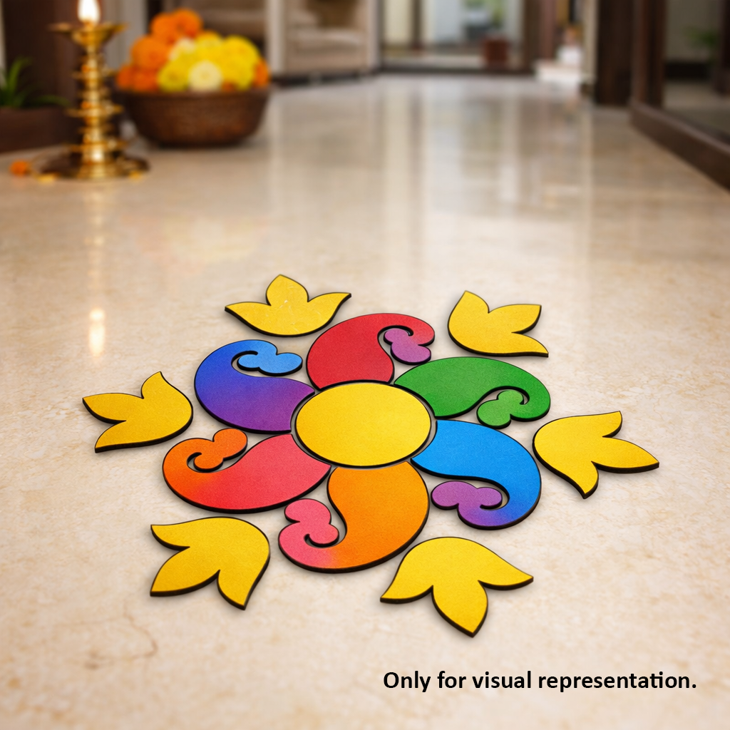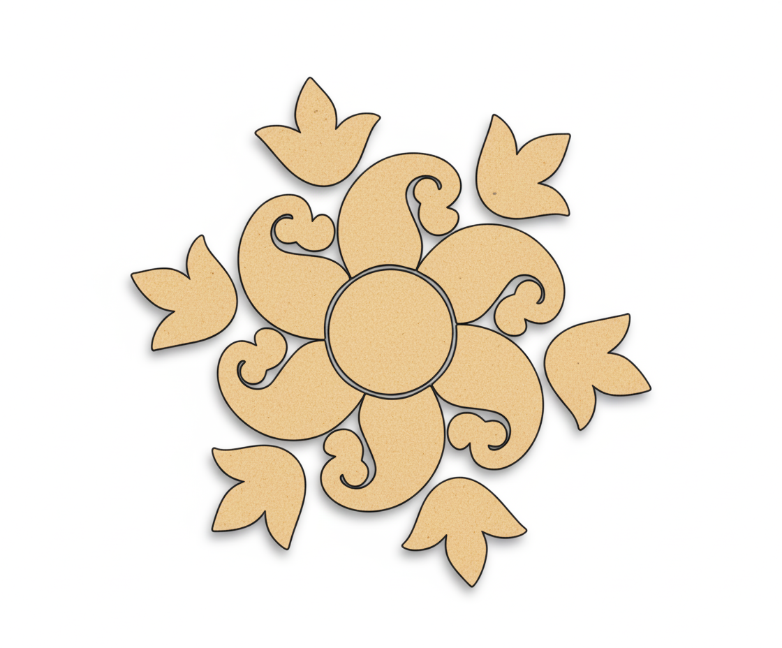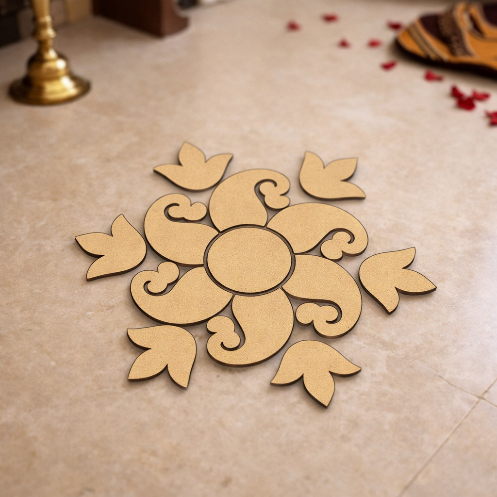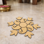 Make your festive decoration look premium with DIY MDF Swirl Floral Rangoli Cutouts for Diwali. This rangoli cutout design includes a round center with elegant swirl-petal shapes and leaf motifs that form a neat, symmetrical rangoli in minutes. Made from high-quality MDF with smooth finishing and clean edges, it’s perfect for acrylic painting and embellishing with glitter, kundan, mirror work, pearls, or decoupage. Use it for Diwali décor, Lakshmi pooja setup, mandir decoration, wedding entrances, housewarming décor, and festive gifting. Easy to arrange, easy to store, and reusable every season—DIY MDF Swirl Floral Rangoli Cutouts for Diwali is ideal for DIY craft lovers
