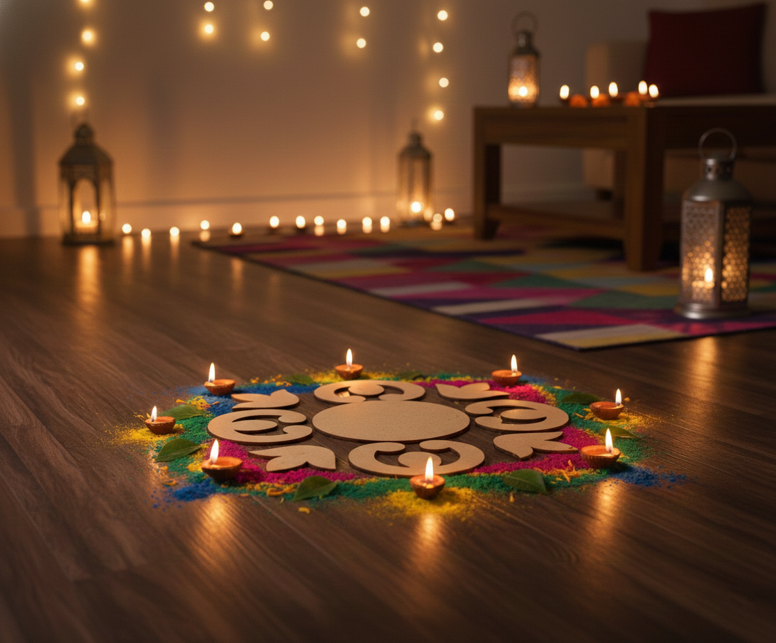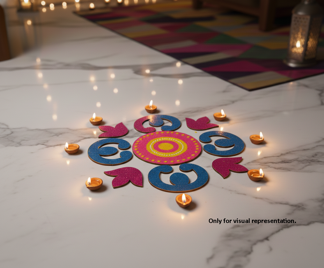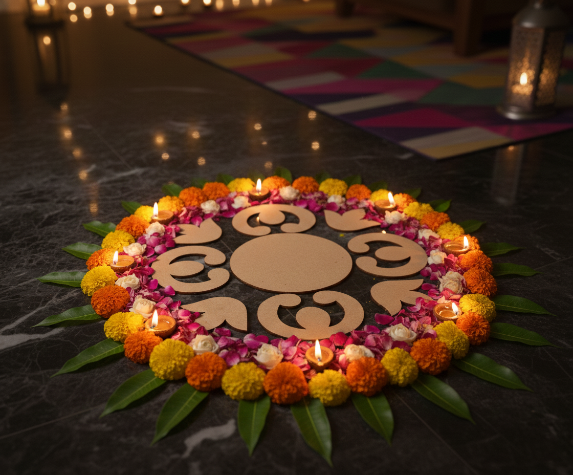 This MDF Floral Rangoli Pattern Craft Set includes a round center base with matching floral and curve-shaped elements that can be arranged in multiple creative designs. It is ideal for rangoli decoration, table décor, wall art layouts, and festival craft activities The smooth MDF surface is perfect for acrylic painting, dot mandala, resin work, decoupage, lippan art, glitter decoration and mirror work. This set is widely used during Diwali, Navratri, pooja room décor, wedding decoration and home entrance decoration