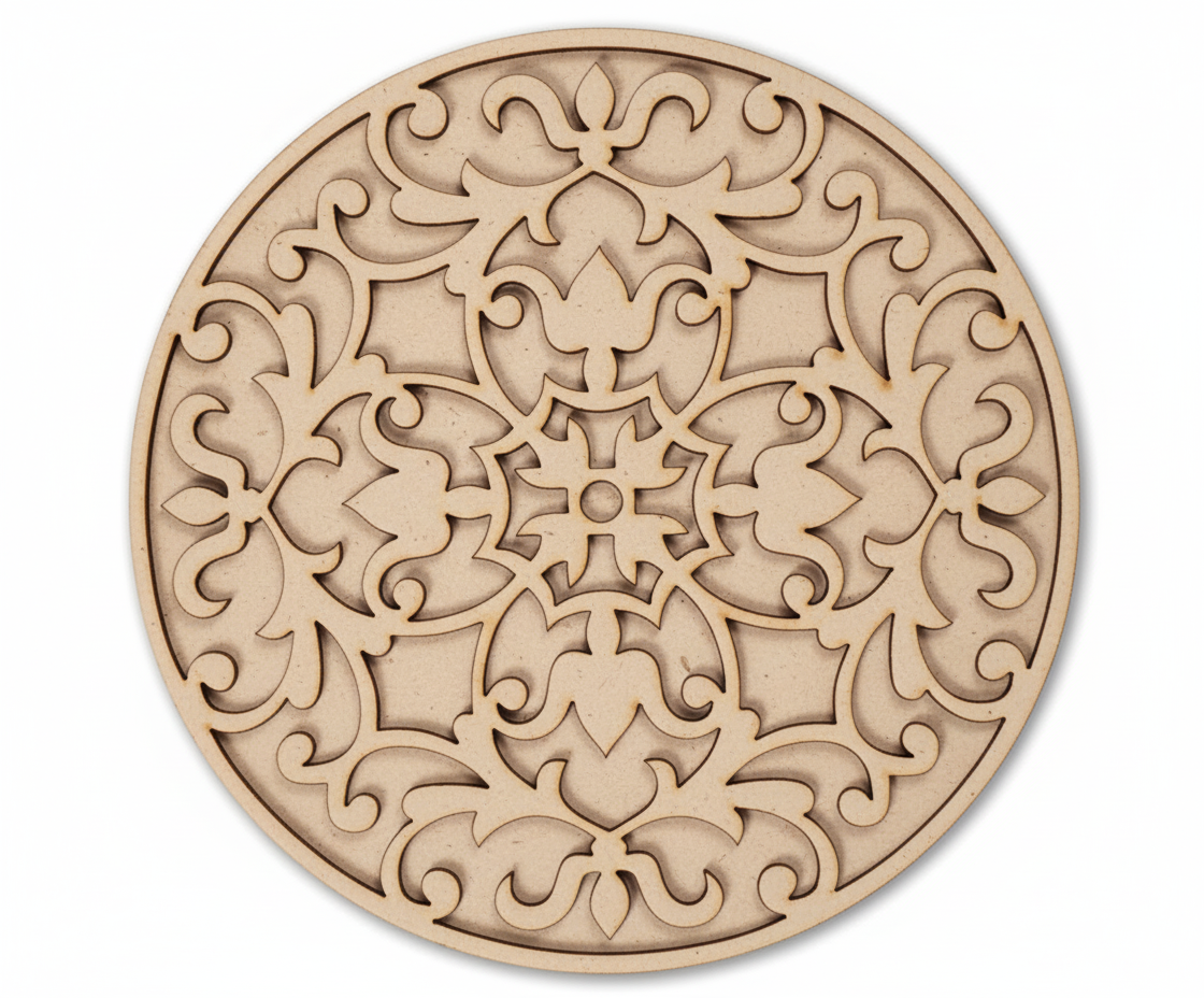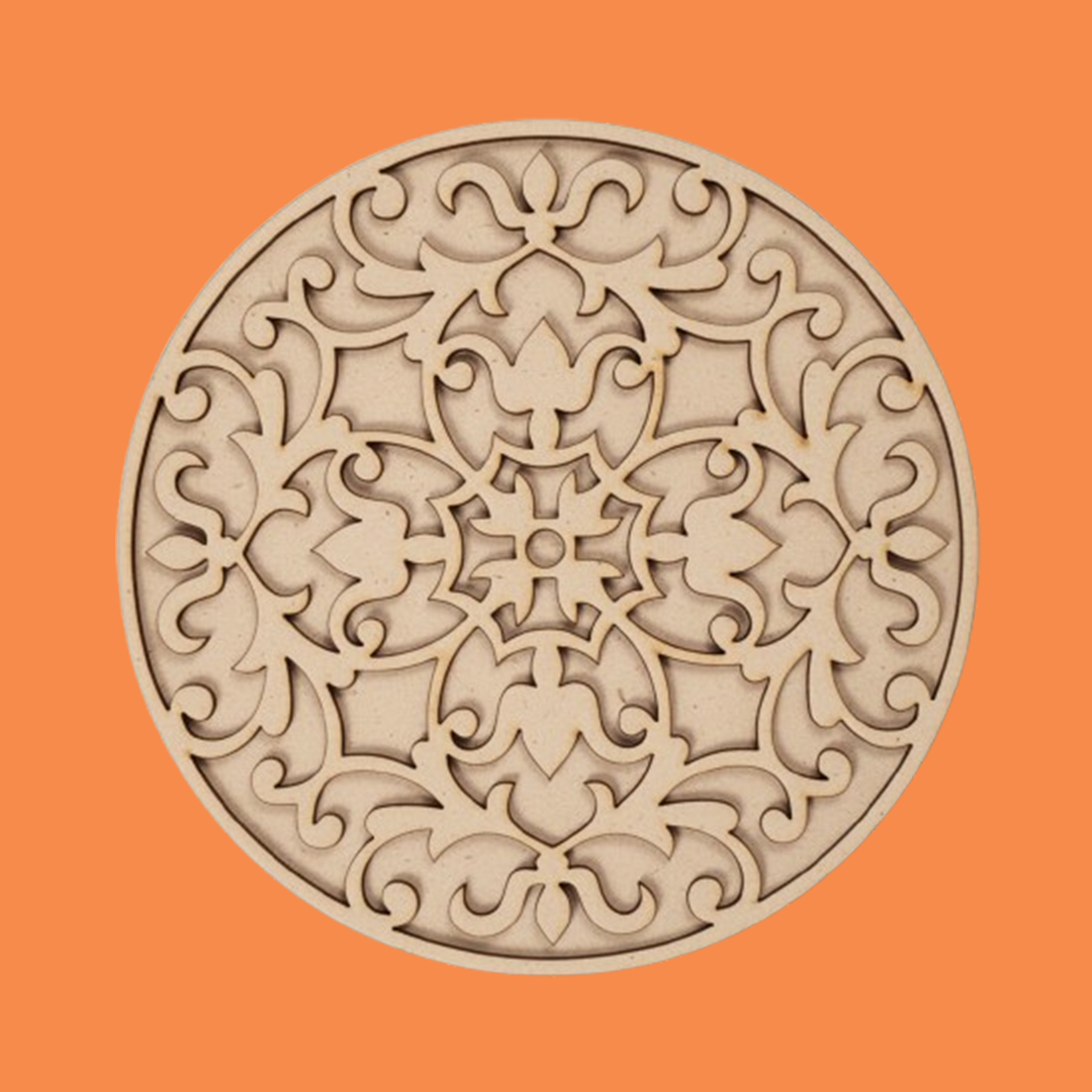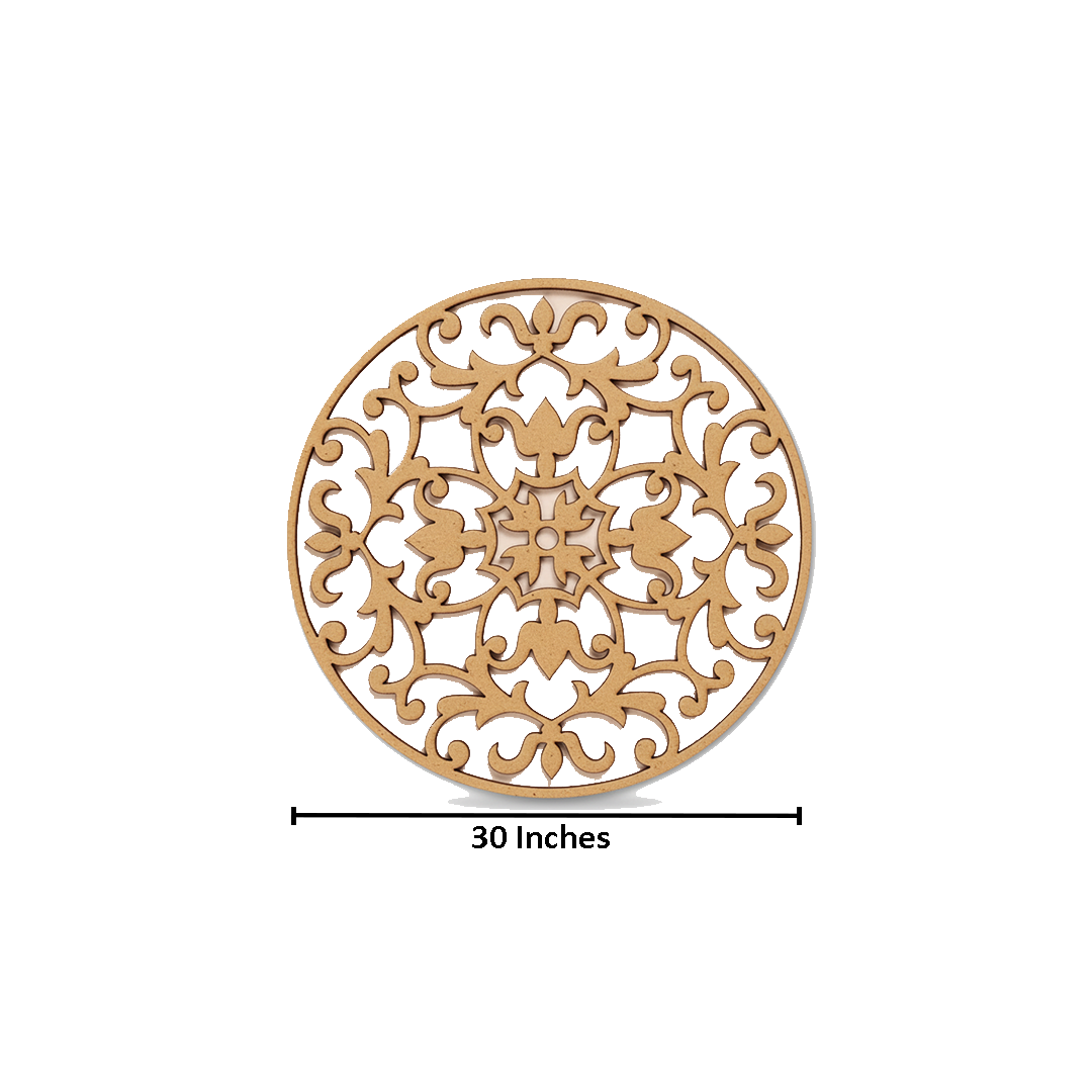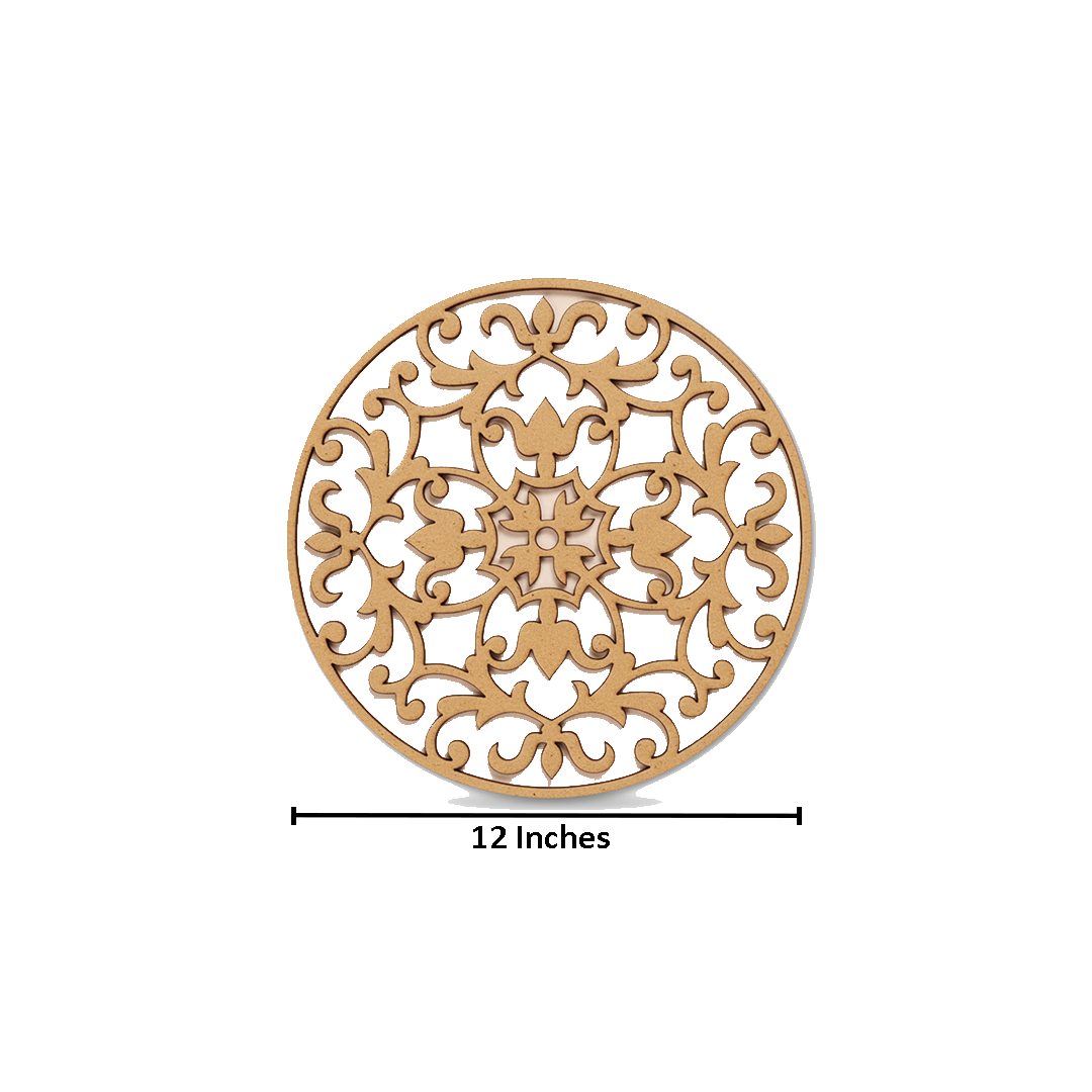 Create a premium festive floor setup with this MDF Intricate Round Jali Rangoli Base Cutout, designed with rich floral and scroll detailing for an elegant traditional look. The jali-style pattern gives a classy, airy finish while the smooth MDF surface makes decorating easy and neat. It is perfect for acrylic painting, dot art, mirror work, kundan decoration, glitter highlights, lippan art, decoupage, and resin coating. Use it for entrance decoration, pooja corners, Diwali styling, Navratri décor, Lakshmi pooja, weddings, and housewarming functions—decorate once and reuse every season MDF Intricate Round Jali Rangoli Base Cutout