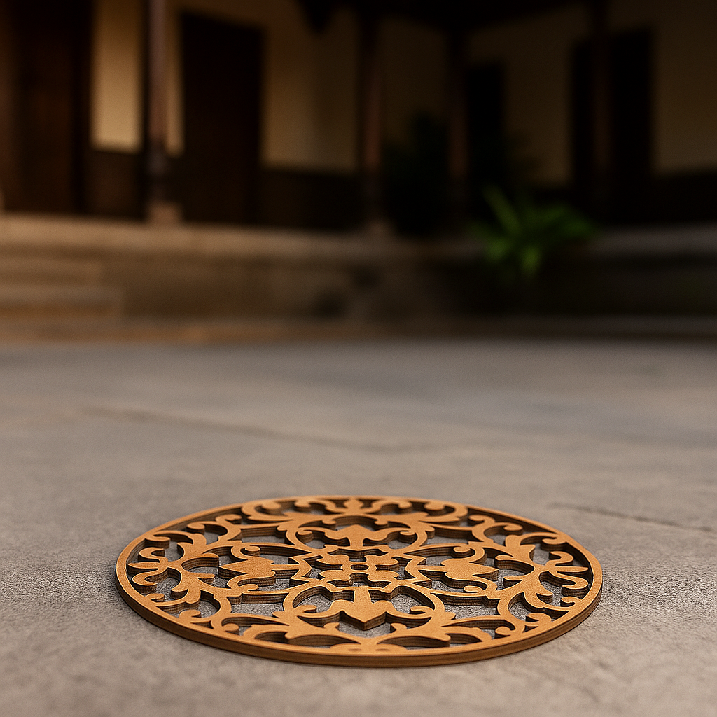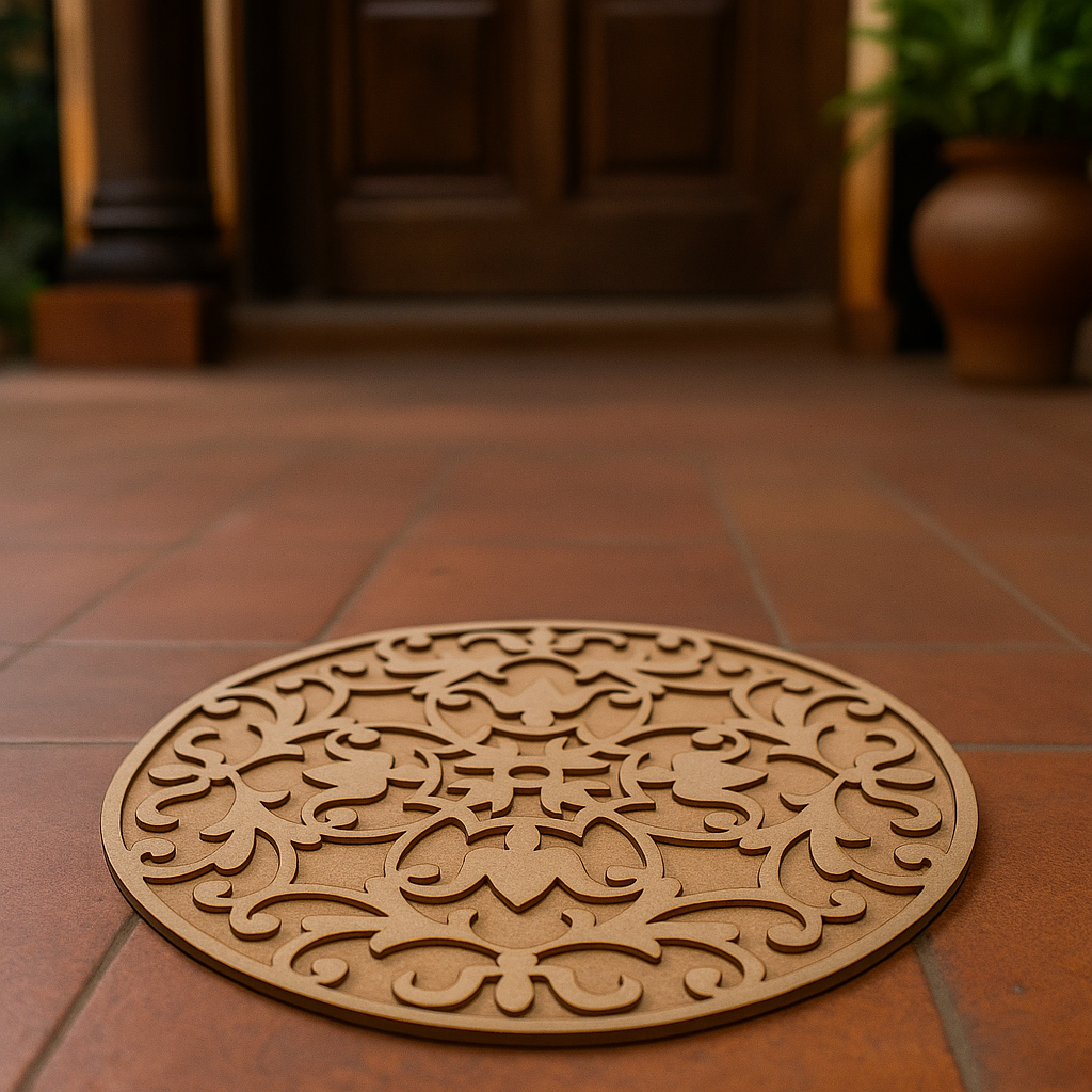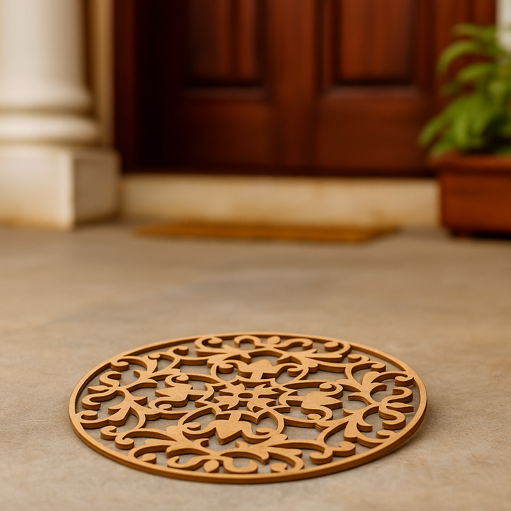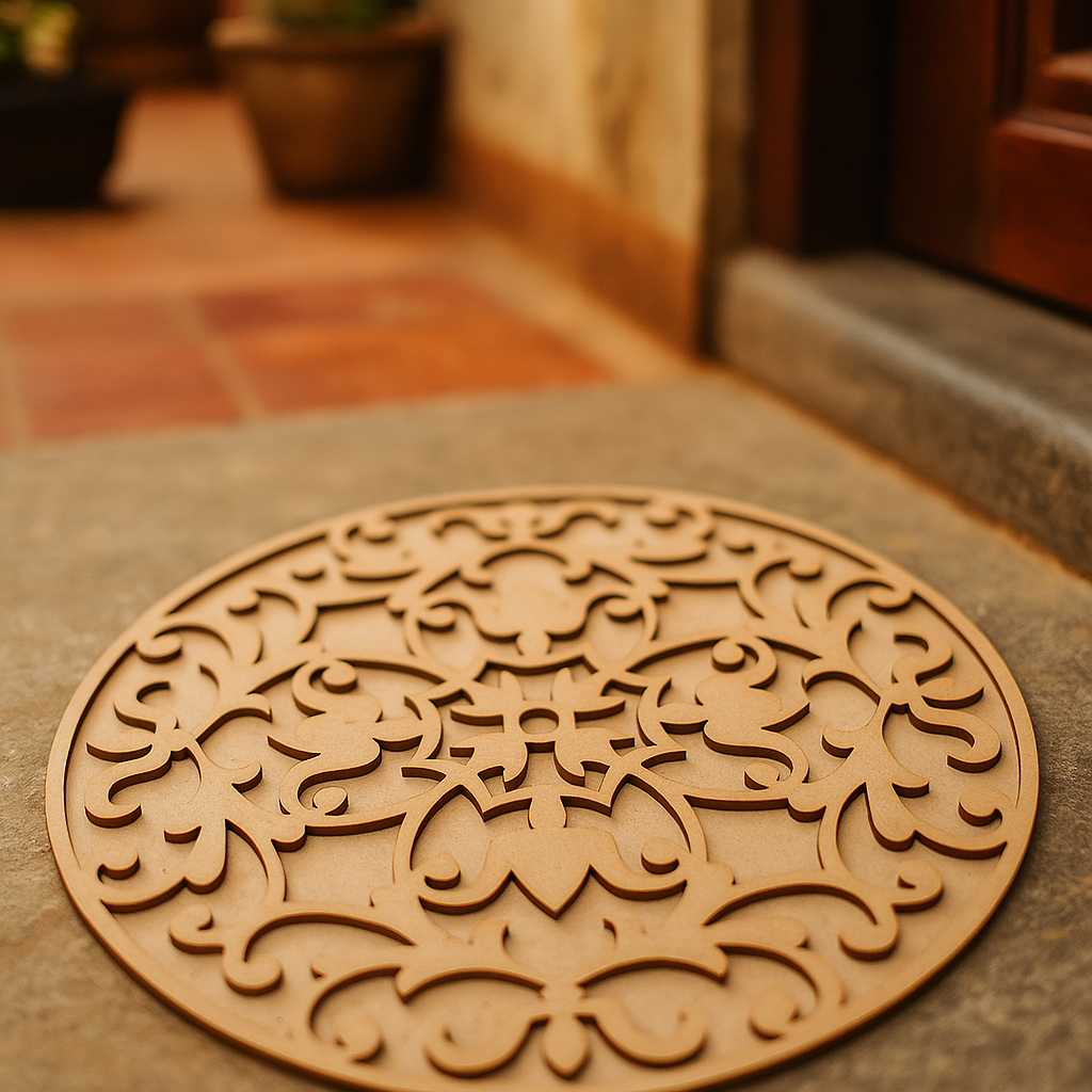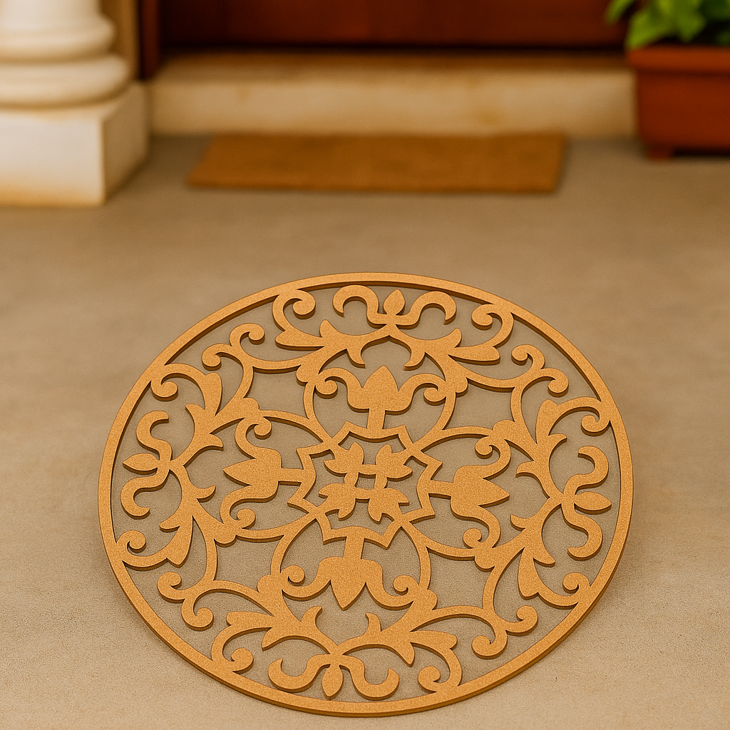 Create a premium festive floor setup with this MDF Intricate Round Jali Rangoli Base Cutout, designed with rich floral and scroll detailing for an elegant traditional look. The jali-style pattern gives a classy, airy finish while the smooth MDF surface makes decorating easy and neat. It is perfect for acrylic painting, dot art, mirror work, kundan decoration, glitter highlights, lippan art, decoupage, and resin coating. Use it for entrance decoration, pooja corners, Diwali styling, Navratri décor, Lakshmi pooja, weddings, and housewarming functions—decorate once and reuse every season MDF Intricate Round Jali Rangoli Base Cutout