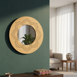 MDF Lotus Outline Round Wall Mirror for Home Decor